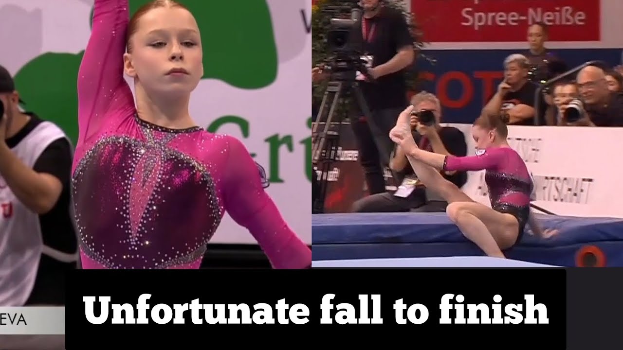 Russian gymnast Leila Vasileva falls on her dismount - Beam Final - Cottbus World Cup 2026
